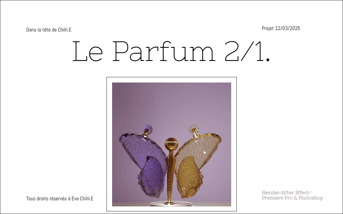 Le premier parfum à double fragrance, conçu pour vous accompagner du jour à la nuit. Le flacon est doté de 2 compartiments distincts, chacun avec son propre spray. À la fois papillon de nuit et de jour, il symbolise la transformation, la beauté éphémère et les rêves.Un univers poétique, rêveur et féerique.